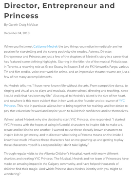 Caitlynne Medrek uses her profound knowledge of the arts to create illustrious authentic characters on set and on stage.